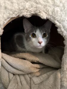 Kinsley is a 1 year old female who has been in our lounge since 10/23/25. She is a bit shy and loves cuddling with her brother Rodney. Kinsley is patiently waiting for the right fit!