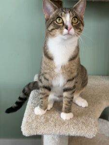 Mag is a 2 year old female who has been in our lounge since 11/2/25. She is a sassy lady and has definitely become queen of the lounge. She LOVES Churus, they are the key to befriending her. Mag would be an amazing companion!