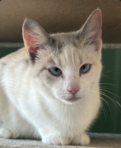 Heron is a 1 year old female who has been in our lounge since 10/9/25. She is a stunning siamese that will surely catch your eye. She is a bit reserved and prefers to lounge in the window seats all day. Heron wants to find furever!